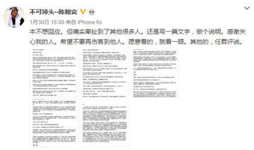 节目播出后在网络引发热议,陈翰宾不得不在微博发文回应