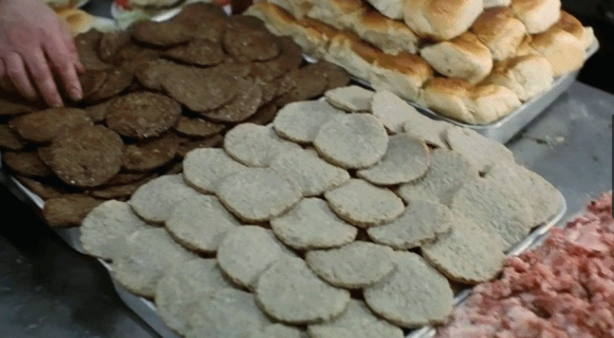 电影中甚至有一段致敬自己《人肉叉烧包》的场景,就是他把饭店老板一家杀了之后,肢解尸体,碎成肉泥,做成汉堡包,起名为,“非洲叉烧包”。