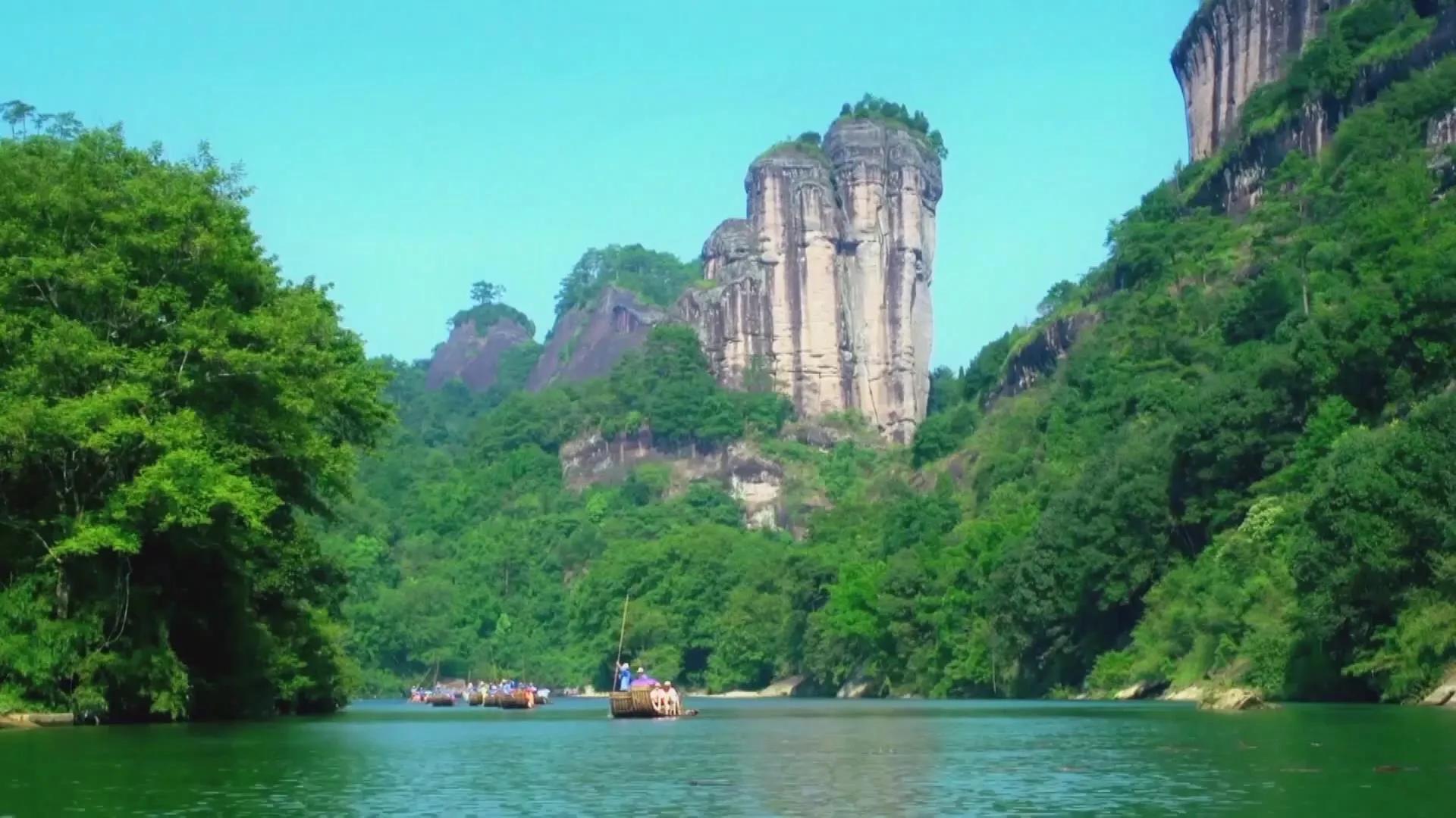 武夷山现已成为我国南方著名的避暑胜地和名胜风景区,当地山体有着明显的丹霞地貌特征,崖壁高耸矗立,绿树郁郁葱葱,更有大红袍这一名贵茶树在半山中摇曳,堪称国宝。游客荡着竹筏在溪流里穿行,远望湖光山色,倒影如画,山景美不胜收,山顶还有道士建的小庙隐入云端之间,恍若仙境,堪称妙绝。