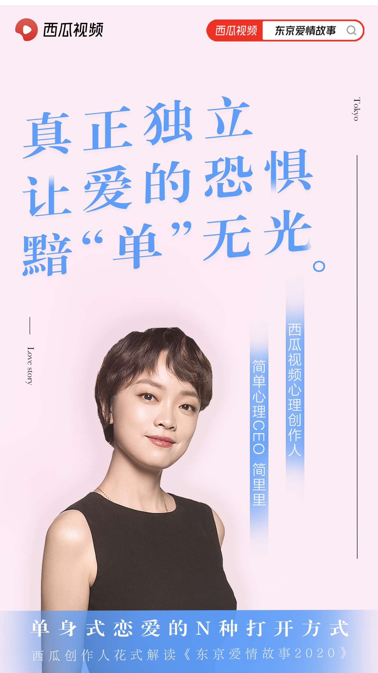 《东京爱情故事》作为一个经典ip,在时代的发展之下开启了全新的爱情故事,展现了年轻一代的爱情观。此次西瓜视频联合多位优质创作人对《东京爱情故事2020》的花式解读,带观众走进了莉香的情感世界,深刻体验了爱情中的浪漫与冲突,也更能体会到“单身式恋爱”背后所传达出的独立精神。