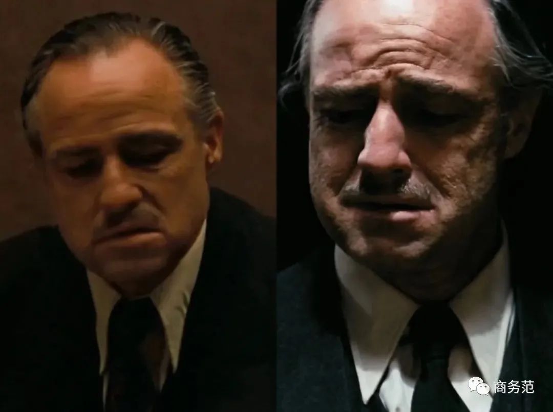 其中初代老教父由经典影星马龙·白兰度饰演,为了演出人物的精髓不惜在嘴里塞了东西,这个角色也让他第二次夺得奥斯卡最佳男主。