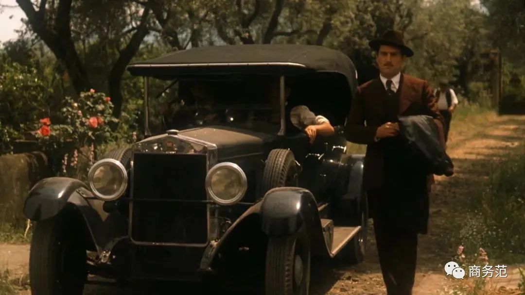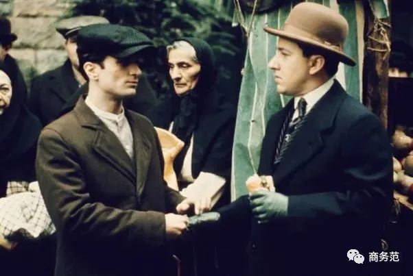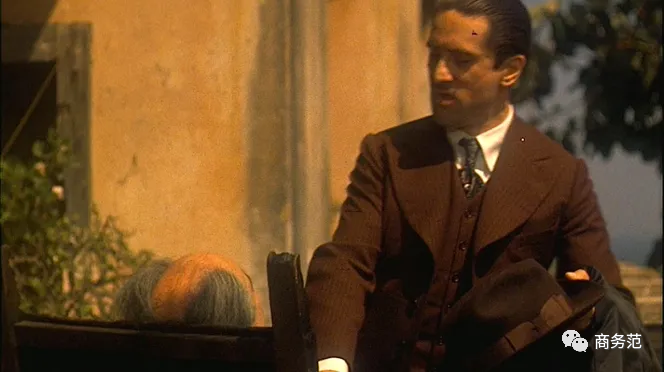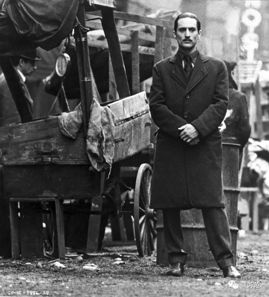在美国功成名就,成为真大佬后,老教父回到家乡西西里手刃仇人,同时穿上了日后标志性的西装三件套+礼帽,完成了从小白到教父的蜕变↓