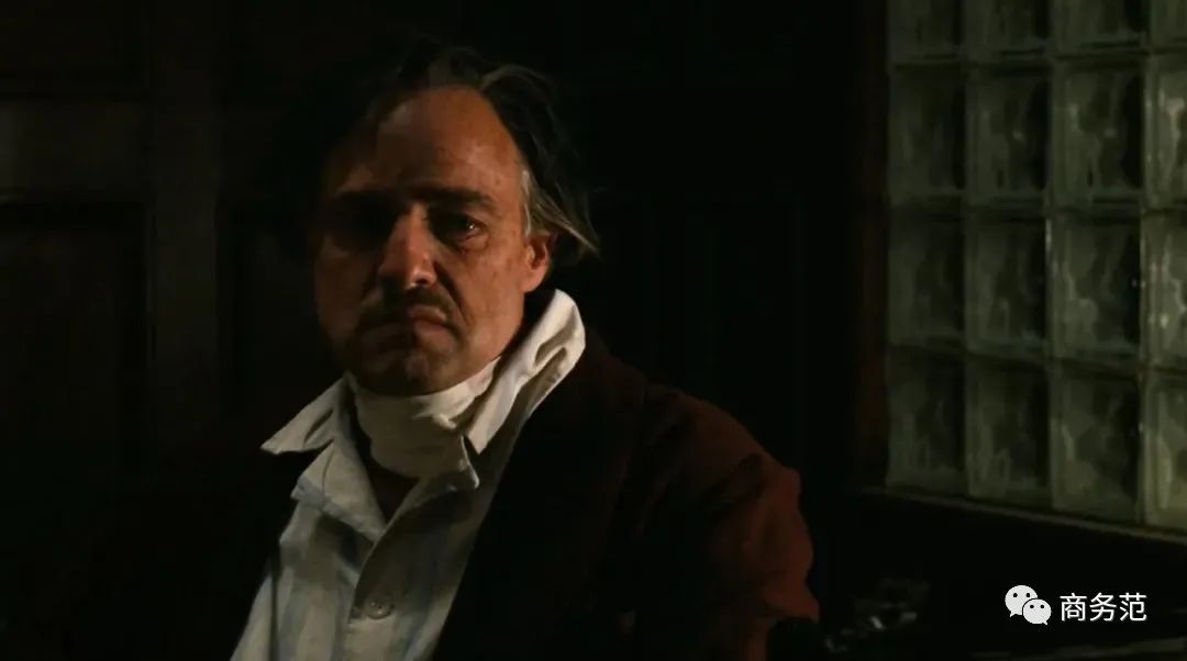 发型也从一丝不苟的油头,变成了不经打理的凌乱发型,凸显着老教父的衰老,也代表着一代教父的退隐和风光不再。