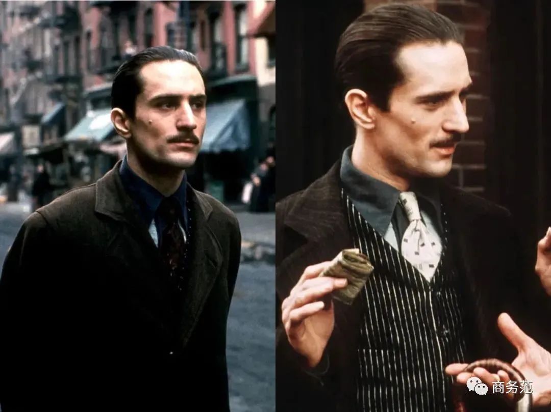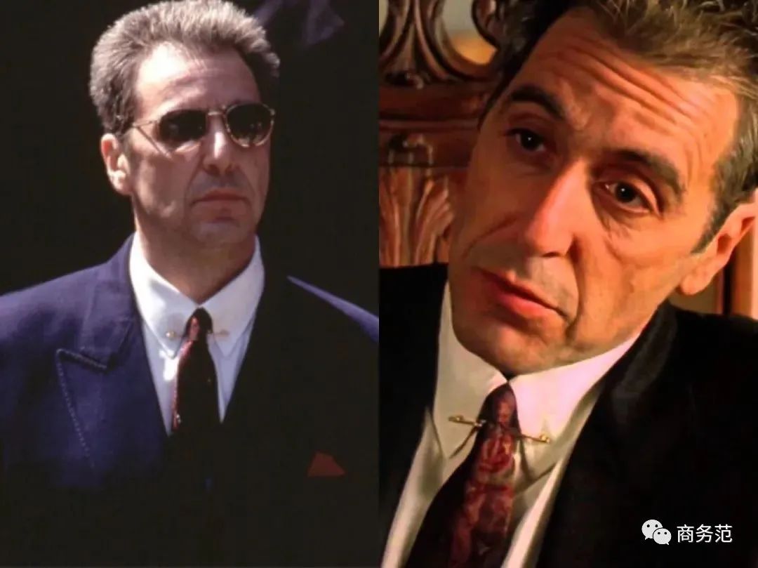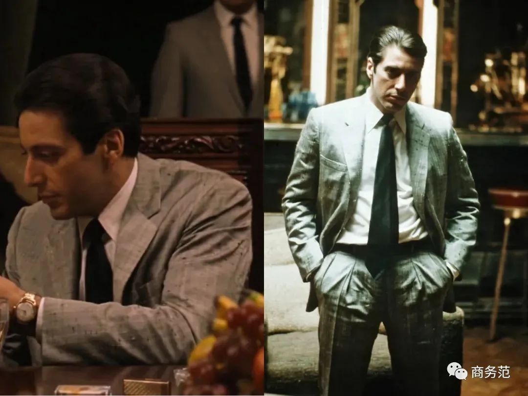 除了史诗般的剧情和精湛的演技,电影中看点十足的,还有教科书级别的西装穿搭。穿最帅的西装、做最狠的事儿,大概说的就是两代教父了。