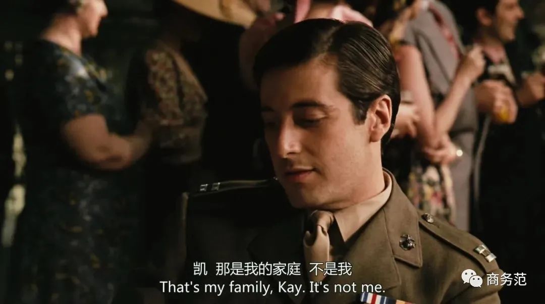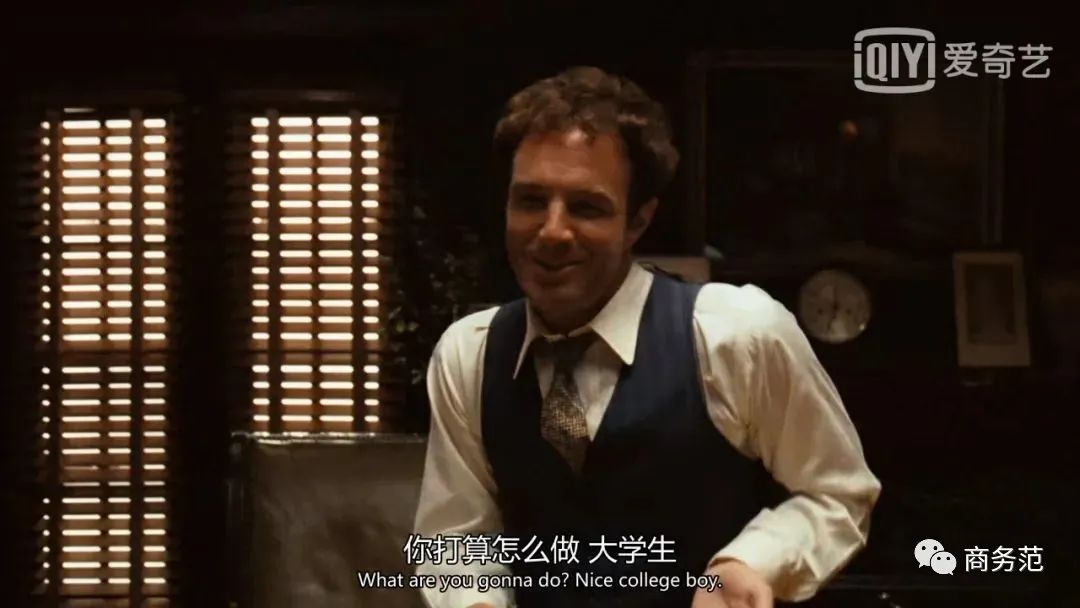 后来参加了海军陆战队,《教父1》开头以上尉军衔退役的他穿着一件军装,看上去依然是个心怀正义的精神小伙,跟家族格格不入。