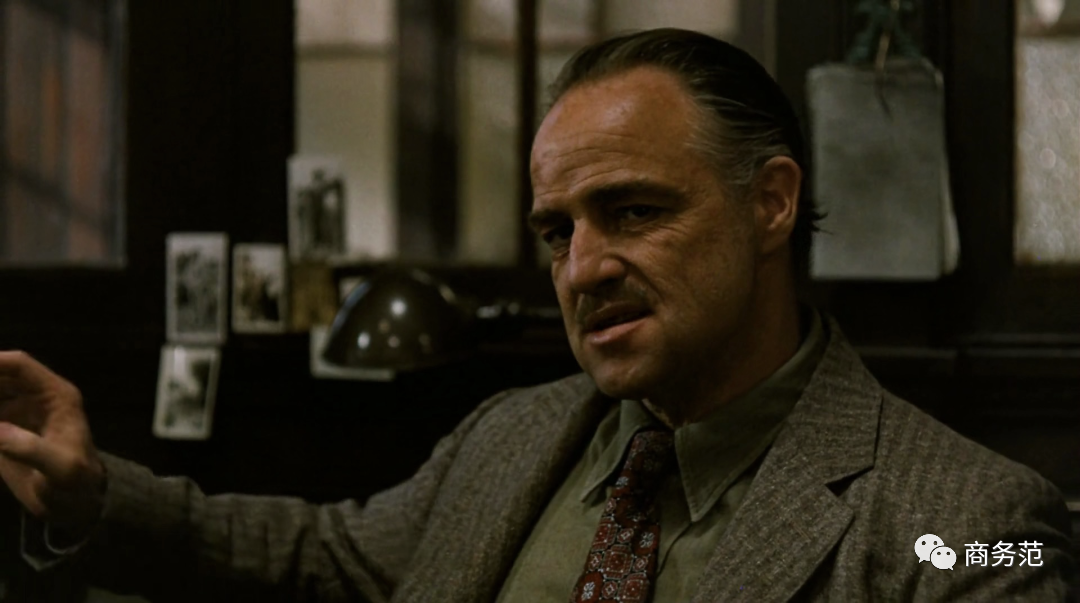 先来说说老教父维托·柯里昂,他的人设是城府极深、手段狠辣,但又为人有原则的黑手党首领,气场强大。