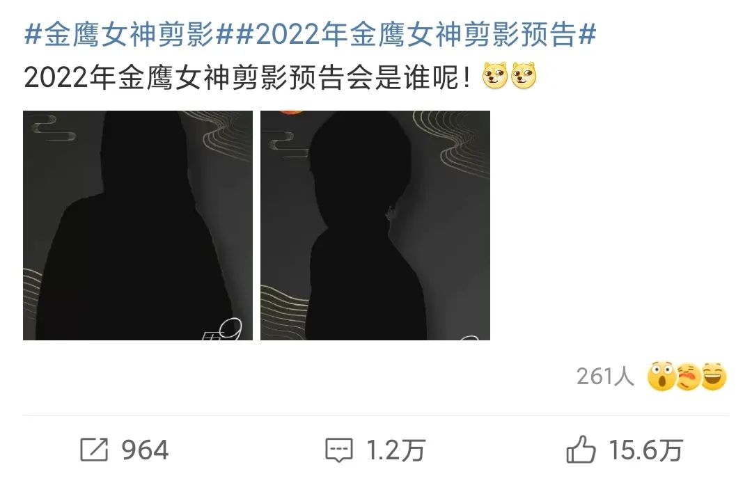 想来大家也一样,很想看今年金鹰节又想怎么整,不然也不会就因为一句2022年金鹰女神预告的博文+两张剪影海报的配图,2022年金鹰女神就上了热搜。