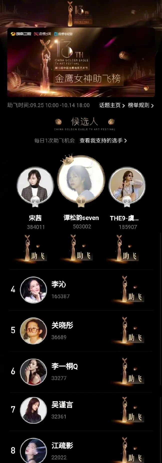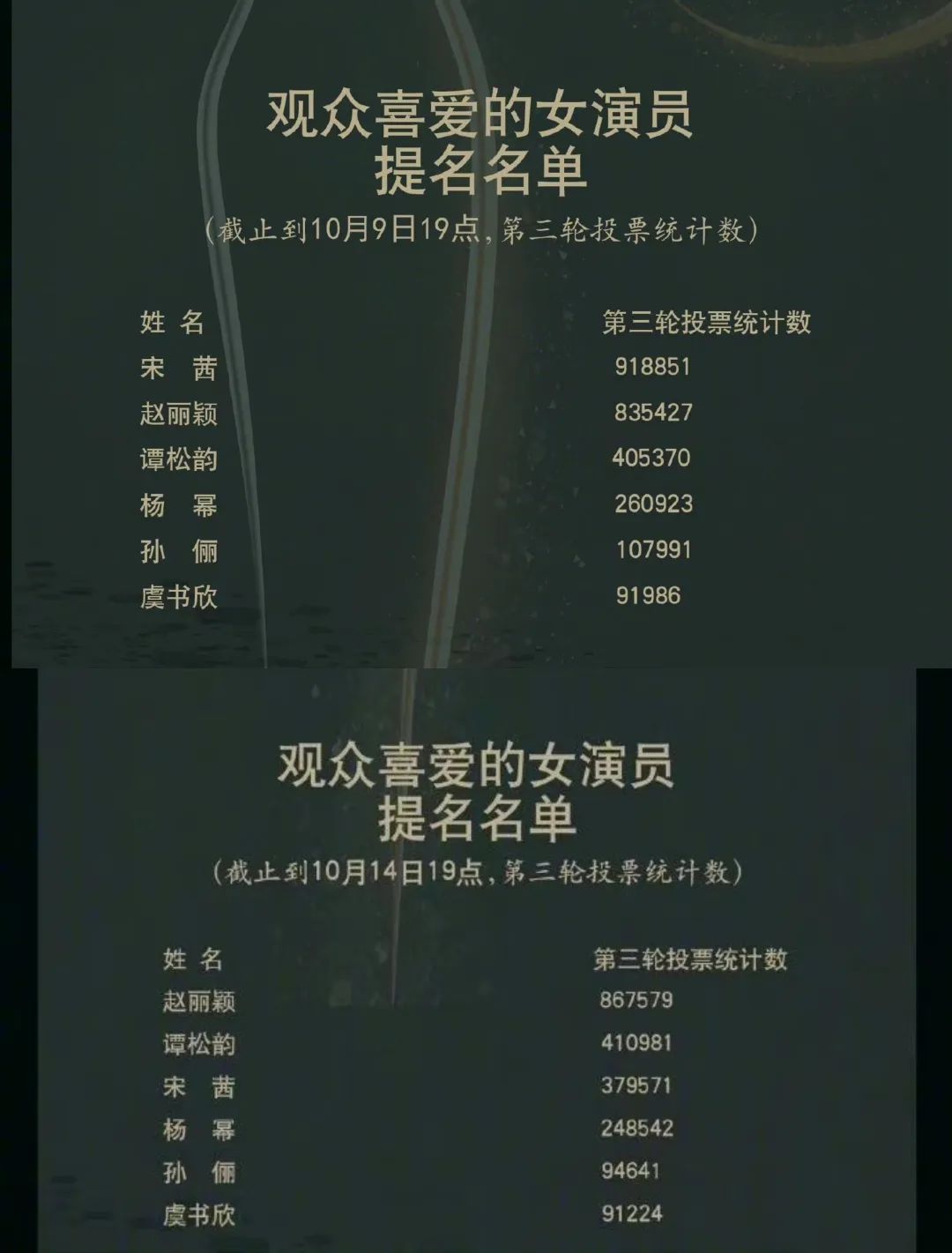 然后就是金鹰节发现最受欢迎女演员奖刷票,清理后原本排名第一的宋茜跌至第三,原本排名第二和第三的赵丽颖和谭松韵依次递补。