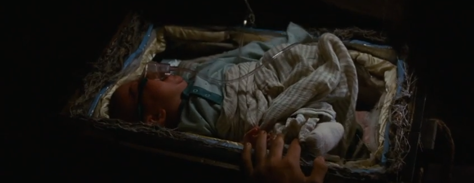 为隔绝婴儿的啼哭声,小儿子被放入木箱内,通过吸氧器呼吸。