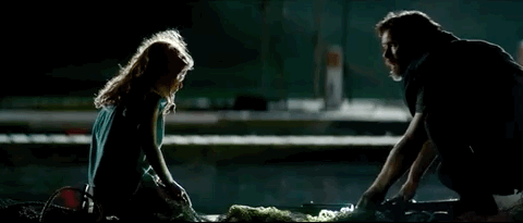 新男主艾米特(基里安·墨菲 饰)被勒住脖子,脑袋猛探出水面。