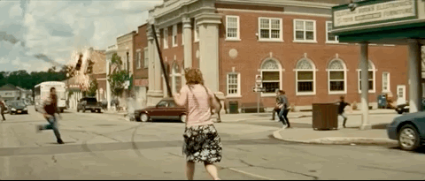 屋外,怪兽疯狂虐杀人类,小镇一片混乱。