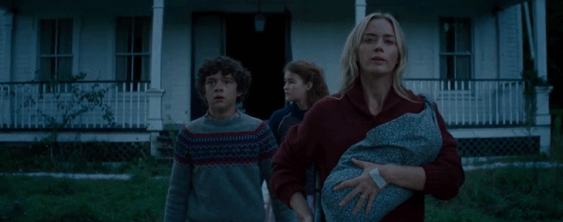 爸爸牺牲,妈妈伊芙琳(艾米莉·布朗特 饰)独自带三个孩子,聪明的女儿,憨憨的大儿子,以及还是婴儿的小儿子。