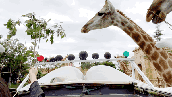 头顶的车棚可以敞开,伸手就可以和长颈鹿互动。