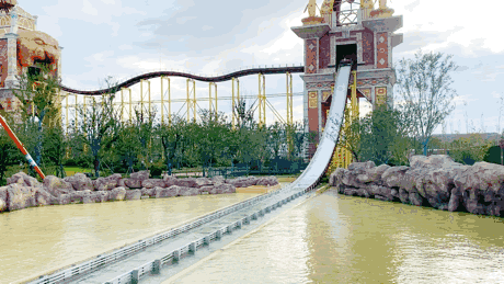 激流勇进是刚开的新项目,是那种溅起巨大浪花,刺激指数五颗星的项目,除了好玩,还很好拍照。