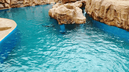 另外,翡翠海区域终于有翡翠的感觉了,在海狮馆外面,有一条流动的河,没有演出时候,海狮们就在这里嬉戏玩耍。