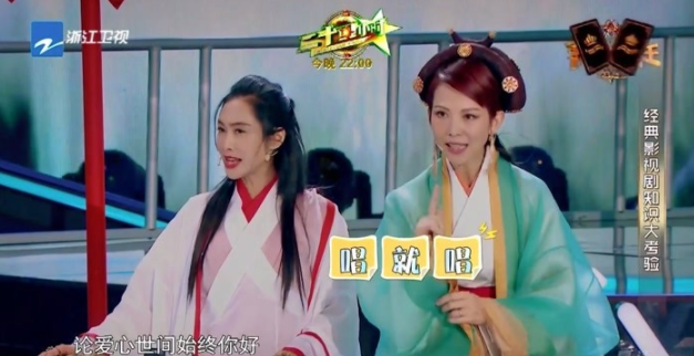 在参加《王牌对王牌》,蔡少芬与朱茵再现《大话西游》经典桥段。