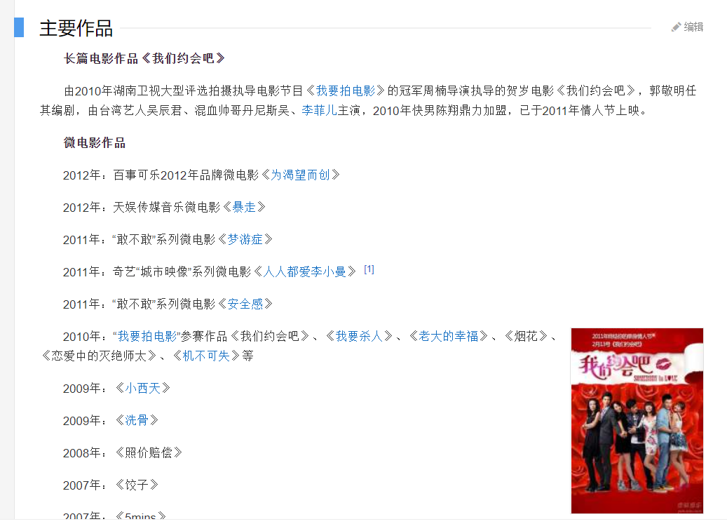 从时间上推算,他差不多就是硕士毕业后,不知因为什么原因参加了综艺节目《我要拍电影》这档节目。