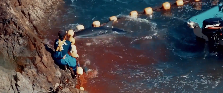 片中,关于为何屠杀海豚,渔民的回答是防止海豚吃掉更多的鱼。