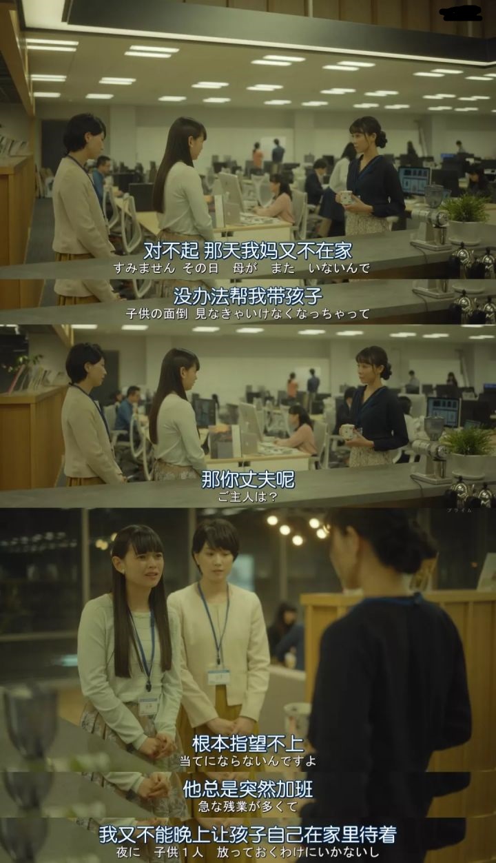 《坡道上的家》里面的女审判官,是一位工作能力出色的职场妈妈,且获得了升职机会,因为不肯放弃事业而和老公争吵谁带娃的问题。她希望丈夫能和自己一起分担家务事、托儿所接送孩子的责任,可丈夫却以“不如不生孩子”的语言暴力来激将女审判官独自带娃,且不向单位申请育儿假。再加上法院的升职调查明显对女审判官的歧视,让女判官感觉压力甚大,导致萌生出辞职带娃的想法。