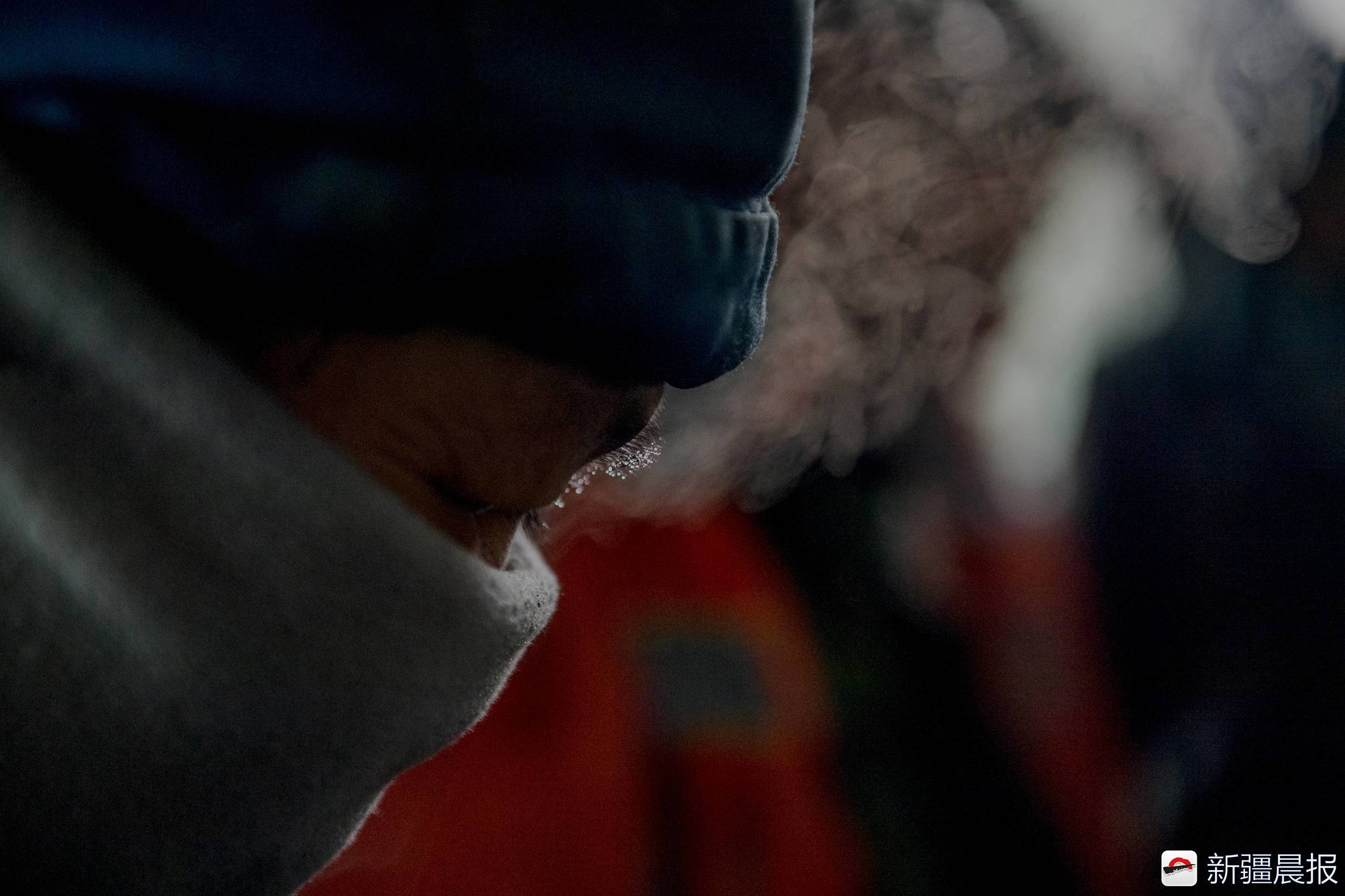 1月23日13时,乌市天山区教委路垃圾中转站,李月琴到地基下查看安装位置,由于工作场所处于半封闭状态,一直是零下二十度的温度,她的眉毛上结了一层霜。