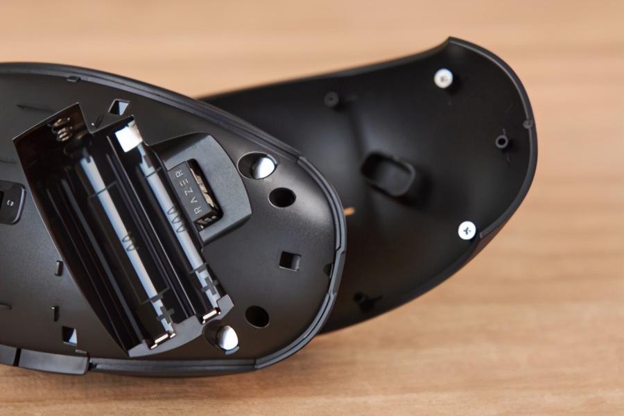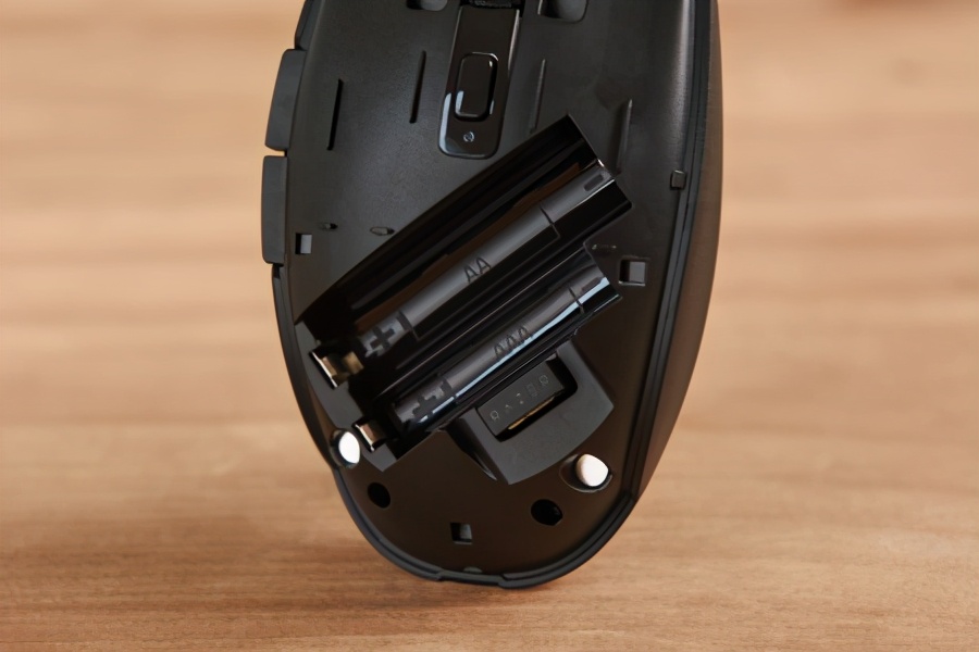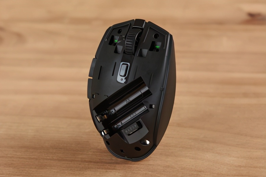 拆开razer orochi 八岐大蛇 v2的上盖,就能看到电池仓和无线接收器放置的位置,无线接收器也非常小。其上盖采用了磁吸式设计,贴合得很好,拆装都很轻松。电池仓可以选择放置5号(aa)或者7号(aaa)电池,非常地方便而且人性化,用户出门在外需要更换电池的时候有更大的选择余地。另外5号电池与7号电池是不能同时安装的,在电池仓的空间设计上就已经断绝了这种可能,只要装了其中一个,另外一个就装不进去了。