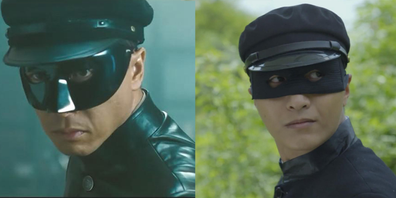 看看《热血勇士》里的黑旋风和甄子丹的《精武风云》里的黑侠pk一下,大家注意人物造型,帽子、眼罩和一身的黑衣服,尽管《热血勇士》动作很精彩,可是要和甄子丹的动作比还是差点,所以以后国产剧上点心,有的东西拿不动就不要拿,既然拿来了就有对比,这样做反而不如不拿。