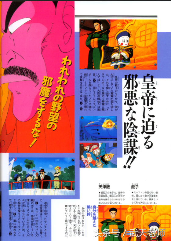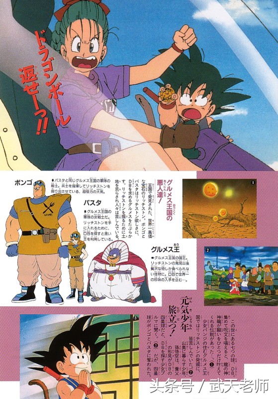 由于是早期的故事情节,本作剧场版并没有龙珠式的气功波对轰和各种强力敌人,唯一的大boss最终变成了上图左下角那个小胖子,而他作恶的原因也仅仅是因为贪吃。结局很符合早期龙珠的设定,大boss最终也变善良了,完美大结局