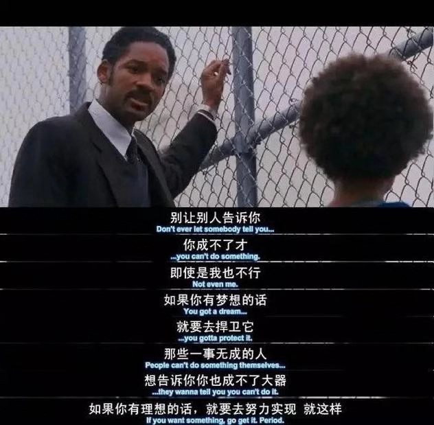 “别让别人告诉你,你成不了才。即使是我也不行。如果你有梦想的话,就要去捍卫它,那些一事无成的人,想告诉你,你也成不了大器。如果你有理想的话,就要去努力实现。就是这样。”