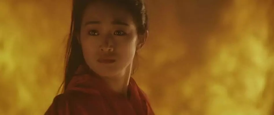一身红衣的冬儿美得惊心动魄。她将长生不老金丹喂给天放,那是她唯一能为情郎和天下苍生做的。