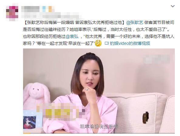 可惜,张歆艺后来在接受访谈时表示,遇到袁弘后,觉得对方太好了,甚至后悔过从前的选择,觉得那时候太不爱惜自己了。