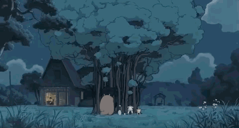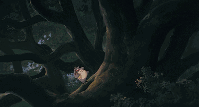 但龙猫一出现,基调马上变了。它抱着小月一路小跑,蹦到树上,大吼一声叫来龙猫巴士。