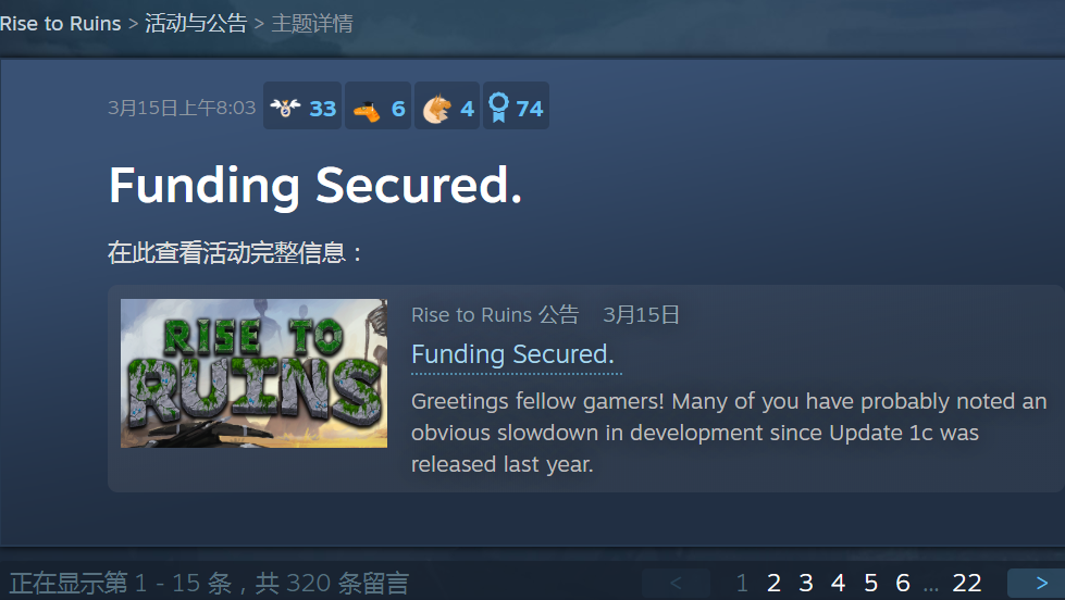 这是今年三月左右,独立游戏《rise to ruins》的steam评论区里多出来的、让人摸不着头脑的评论。