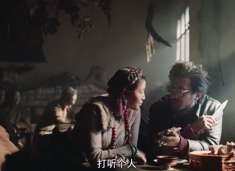 点了几个菜、几瓶酒之后,金巴向老板娘打听,之前是否来过一个身形消瘦的藏民。而老板娘则询问金巴,为什么总是带着一副墨镜。