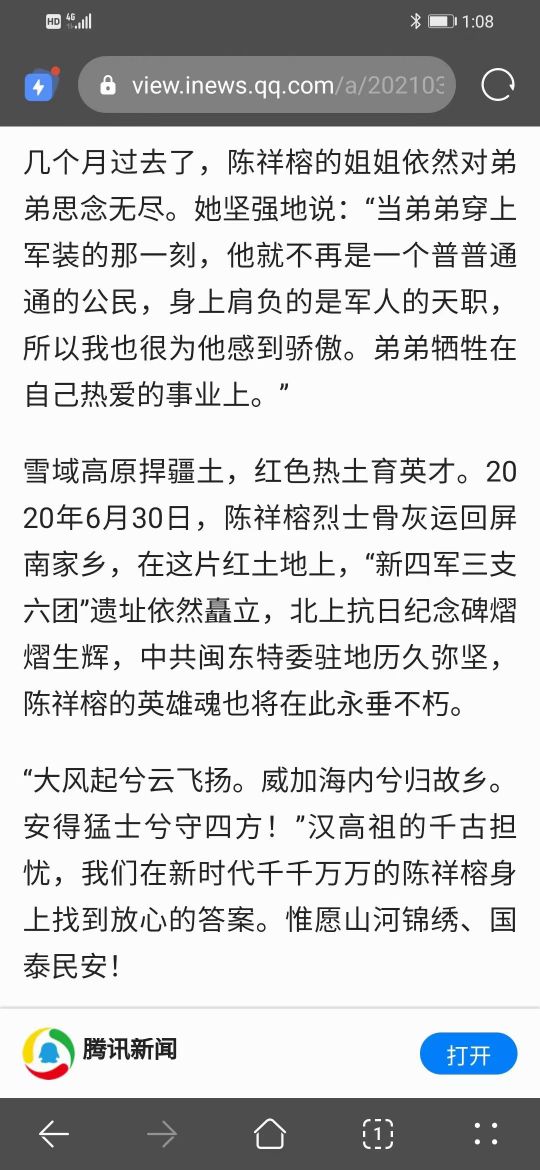 久久未能平静。昨天才知近来一见如故的陈祥健,他的亲堂弟竟是陈祥榕!瞬间,一生中,最近距离感,身边英雄军人的形象。[合十][合十][合十]我的苟活,他的精采。