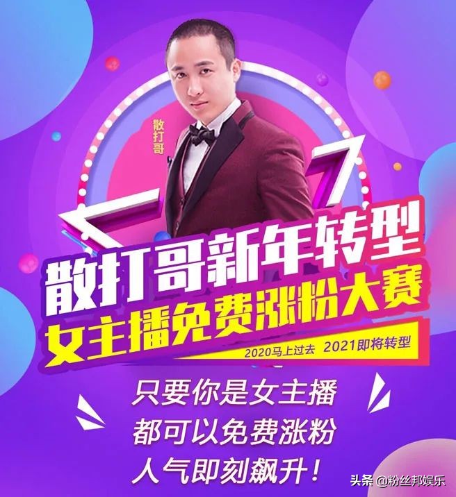 而近期,在2021年新年开始他确实也是开始转型,举办了一个女主播免费涨粉大赛,为平台的女主播们提供涨粉丝机会。