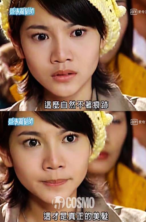 此时的女主角刚在一场中法剪发赛上目睹了明道饰演的亚斯的美发神技,成为迷妹,特来拜师。丝毫没有意识到内心os的尴尬和羞耻。