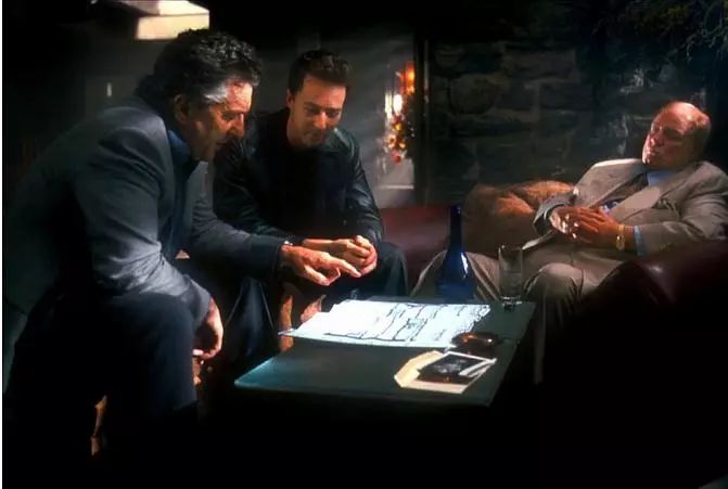 十几年前的时候,特效没那么发达,星海战术也不流行,一般电影想大卖基本就得靠剧情的精巧和演员的表现。所以当你看到马龙·白兰度、罗伯特·德尼罗、爱德华·诺顿老中青三代实力男星同台时,已经预示了这部片子的非同一般。