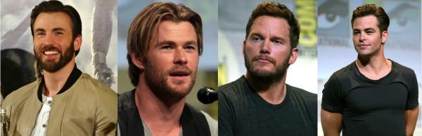 从左到右分别为克里斯·埃文斯、克里斯·海姆斯沃斯、克里斯·帕拉特和克里斯·派恩。