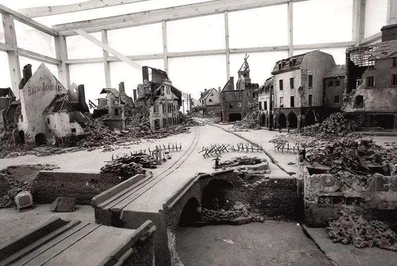 他首先在充分考虑机位、调度与灯光等需求后,制作出这个法国小镇的立体模型,然后再将其在英国哈特菲尔德一个废弃的航空工厂按真实比例彻底还原。拍摄过程中他还要根据摄影和灯光需要随时进行翻修或粉刷等工作。