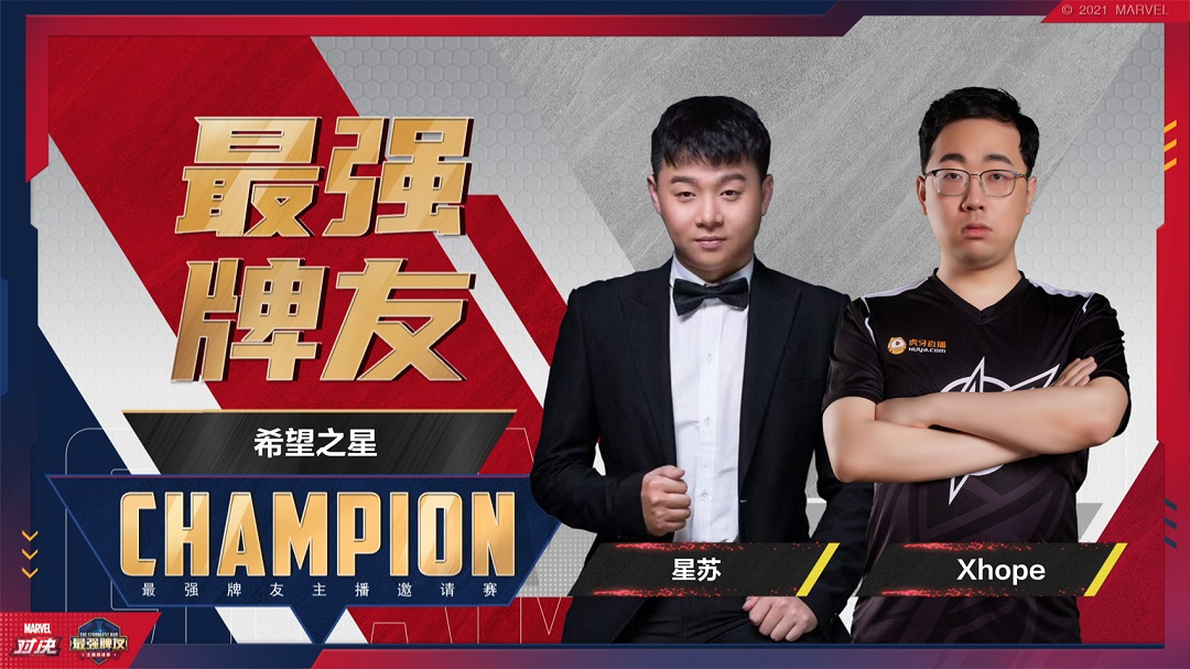 在不久前落下帷幕的【最强牌友】杯主播表演赛上,六位知名ccg明星主播两两组队,在一番斗智斗勇后,角逐出了《漫威对决》最强牌友组合!曾经为国争光,拿下中欧对抗赛冠军的职业选手xhope联手《漫威对决》二测天梯榜第一、ig俱乐部职业选手星苏组成“希望之星”队,成功战胜少帮主、刘飞儿等一众ccg明星主播选手,登上了《漫威对决》的最强牌友冠军宝座!