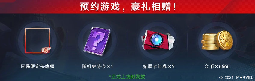 现在登陆官网预约,限定豪礼等你领!玩家可前往《漫威对决》官网进行预约,网易限定头像框、随机史诗卡、拓展卡包券与海量金币拿到手软,公测豪礼,预约奖励将在游戏正式上线时统一发放。