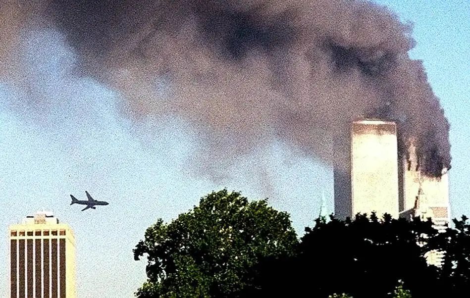 纽约世界贸易中心一号楼和世界贸易中心二号楼,在遭受飞机撞击后,惨烈倒塌。