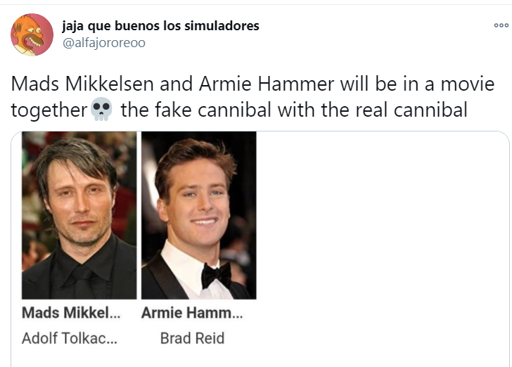 更好笑的是有人说让艾米锤“本色出演汉尼拔”。还有人说很期待他与饰演过汉尼拔的麦子叔的合作: