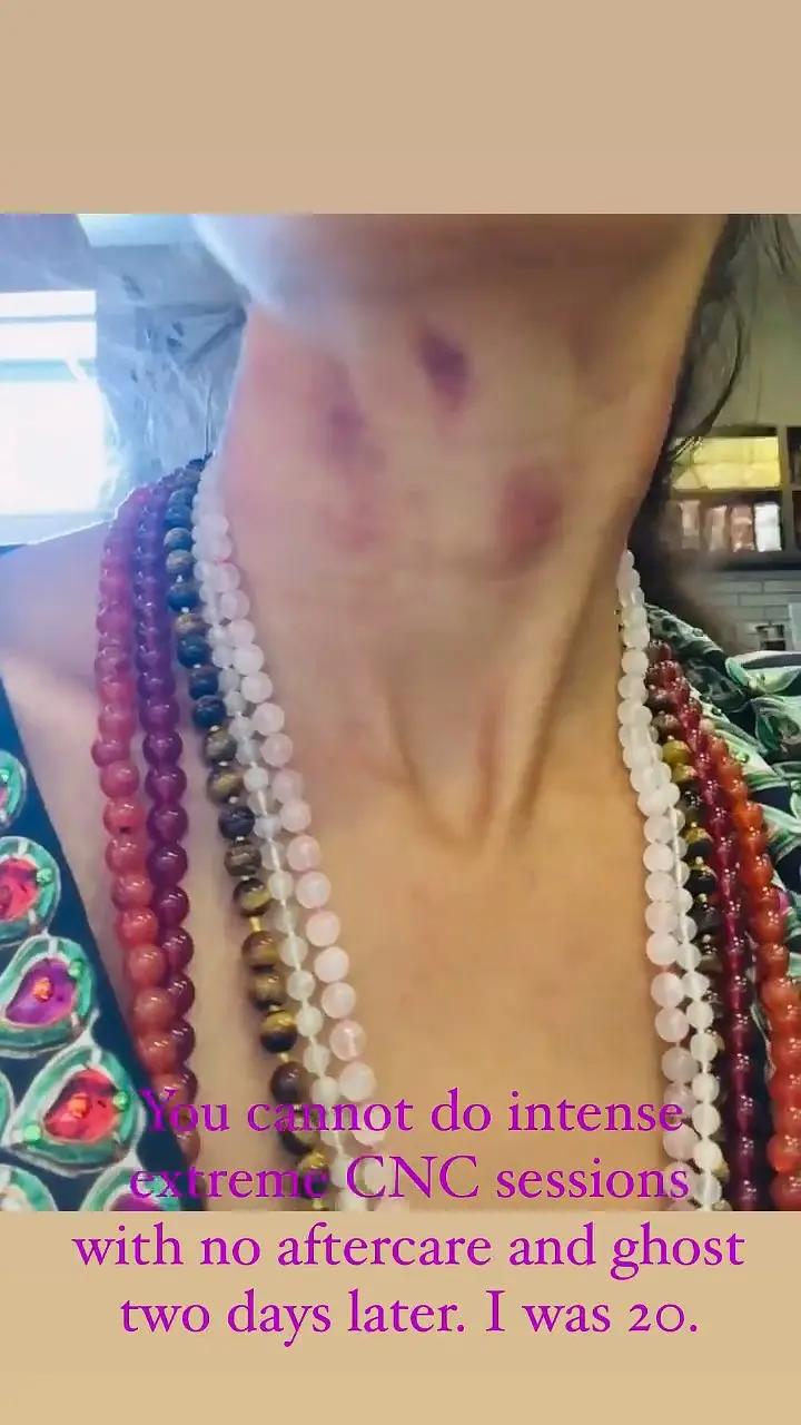 为了证明自己和艾米锤之间不光只是用文字口嗨,描述强x,虐待的场景。爆料人还发了一张自己脖子的照片。上面全是发紫的瘀血,并声明自己被艾米锤控制并性虐时只有20岁。