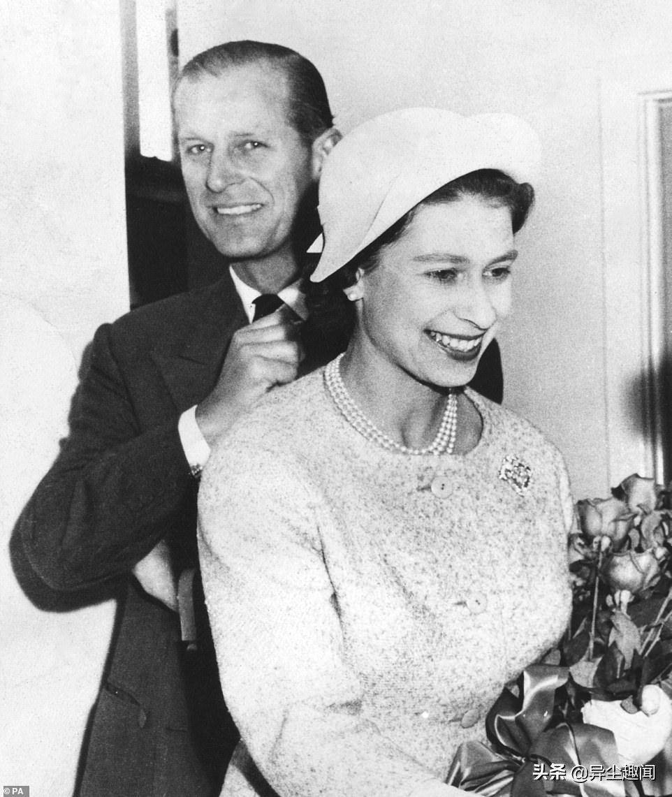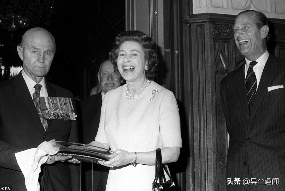 39.在加拿大访问魁北克时,伊丽莎白女王微笑着,她的丈夫菲利普亲王紧随其后。
