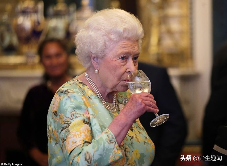 57.2017 年,伊丽莎白二世女王在白金汉宫参加一个活动时喝了一大口酒。