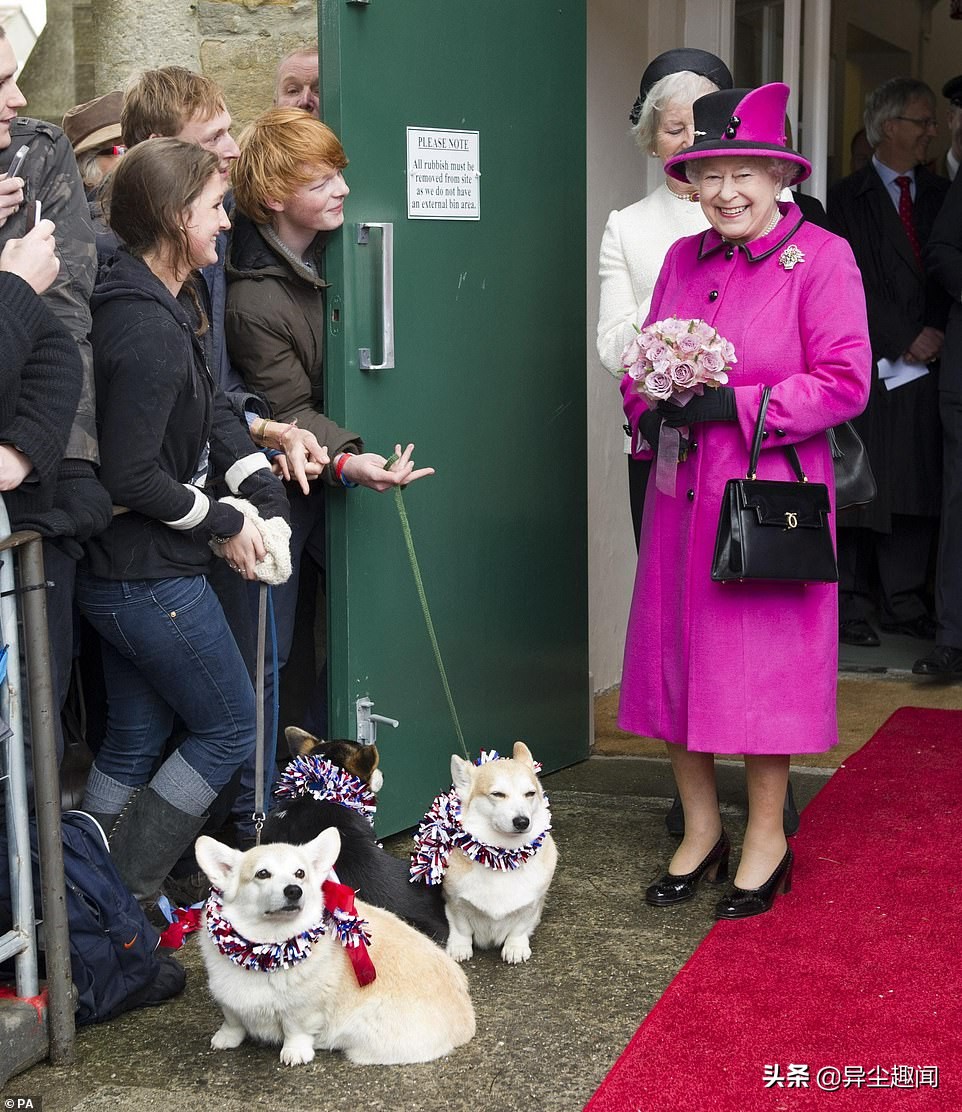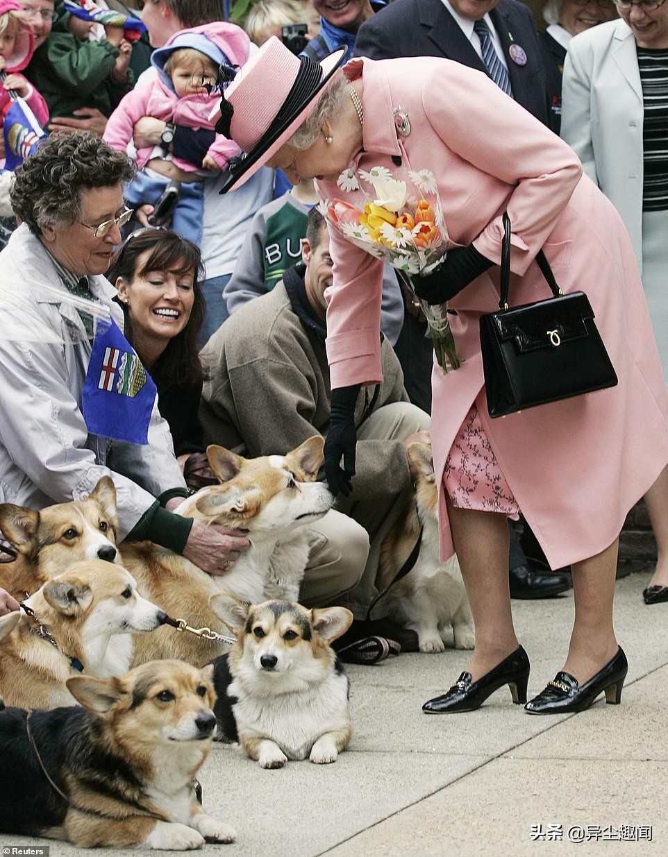 18.除了是有史以来在位时间最长的英国君主,女王还以宠爱她的柯基犬而闻名。 2005 年,她在这里看到了一群柯基犬。