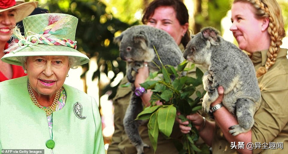 19. 2011 年,在一次澳洲之旅中,女王参观布里斯班野生动物园时与两只考拉互动。