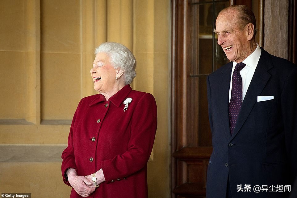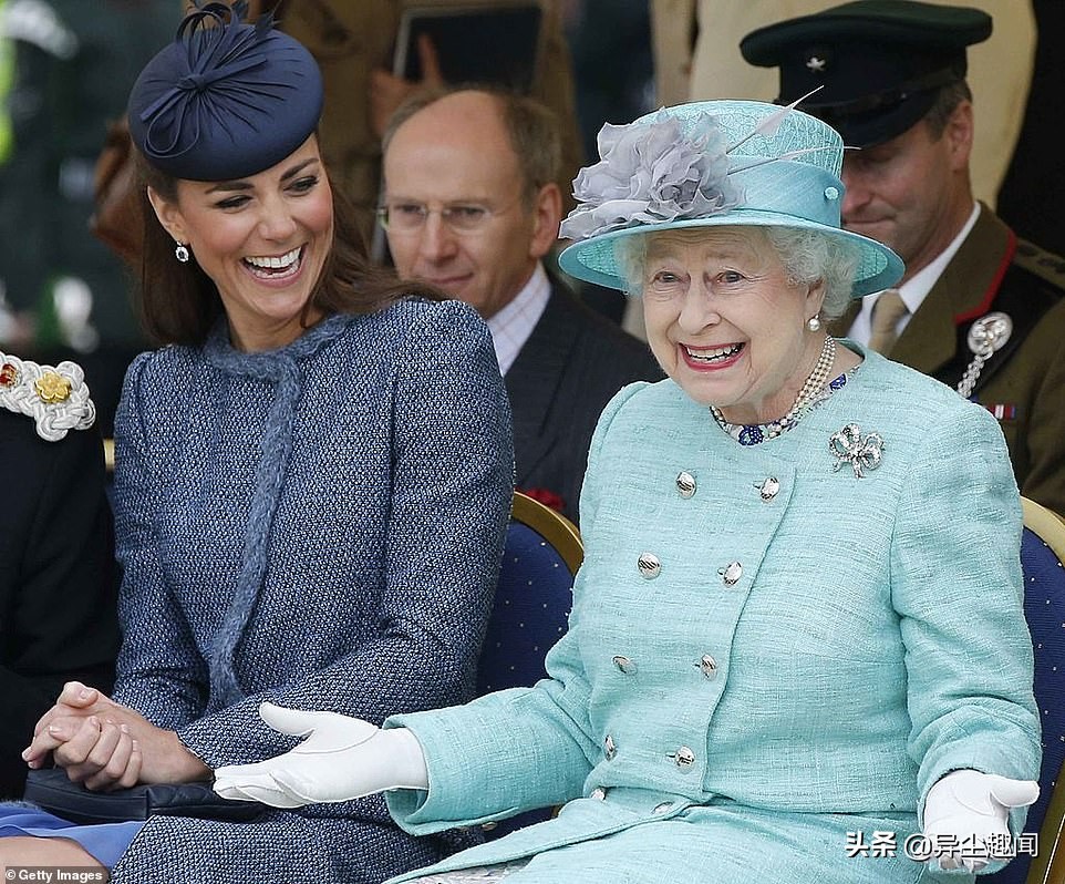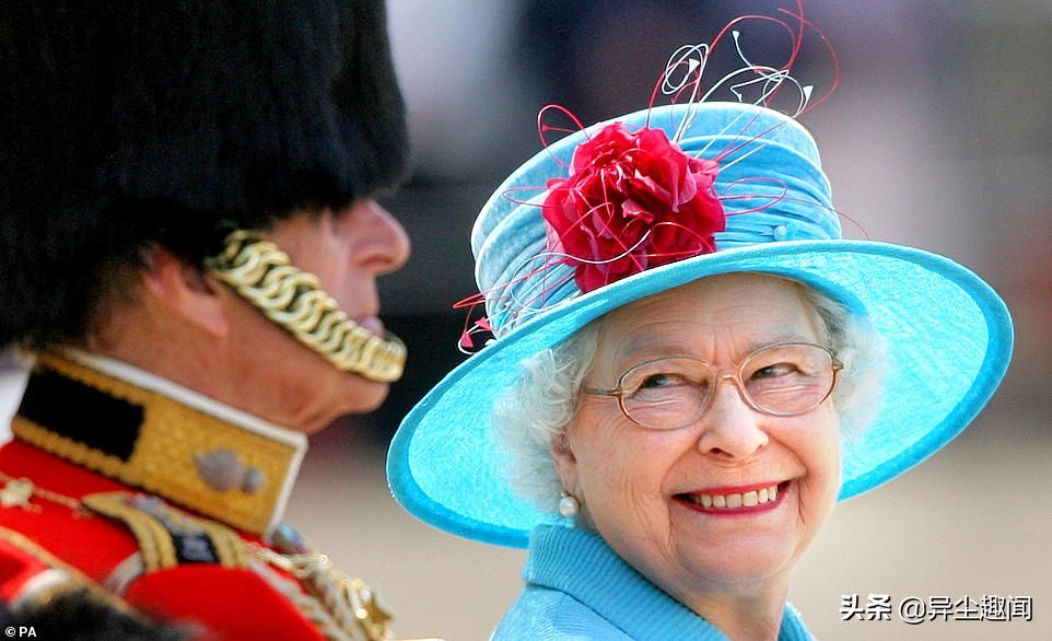 4.当女王大笑时,王室成员都在阅兵式庆祝活动中咧嘴笑了。