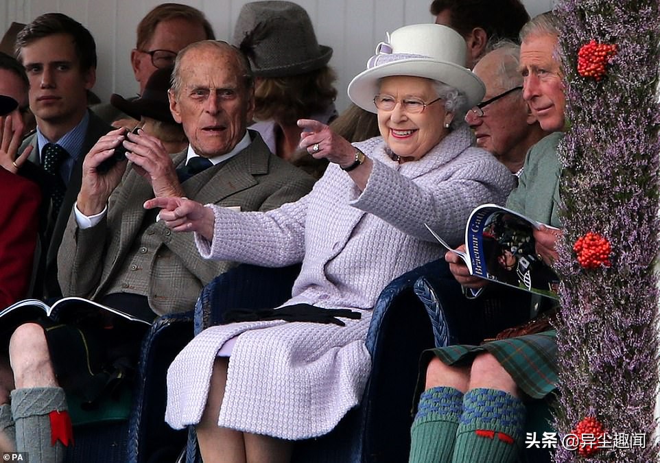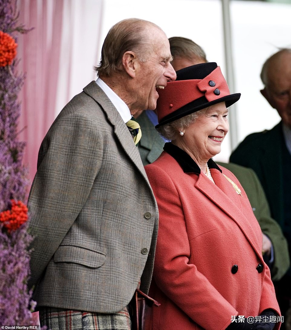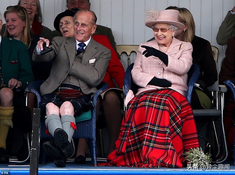 43.在苏格兰高地举行的一年一度的布雷马聚会上,女王和菲利普都面带微笑。